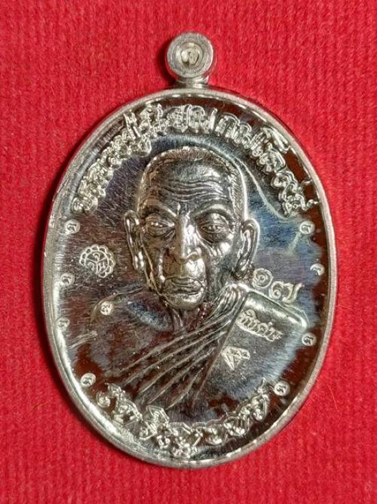 เหรียญหลวงปู่นิยม กมโล รุ่น เจริญพรเมตตามหานิยม ออกวัดแจ้งนอก ปี 2555 เนื้อ เงิน พิเศษ ตอกโค๊ต 9 รอบ หมายเลข 17 สภาพสวย เคาะเดียวแดง