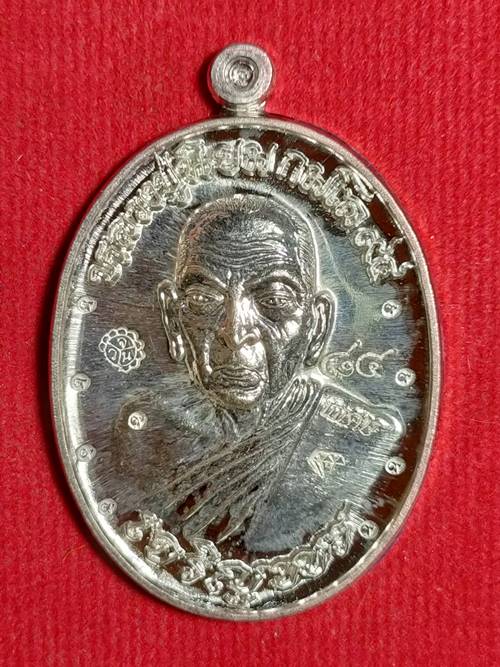 เหรียญหลวงปู่นิยม กมโล รุ่น เจริญพรเมตตามหานิยม ออกวัดแจ้งนอก ปี 2555 เนื้อ เงิน พิเศษ ตอกโค๊ต 9 รอบ หมายเลข 84 สภาพสวย เคาะเดียวแดง
