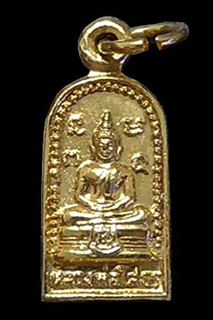 เหรียญใบมะขามพระพุทธโสธรหลังนางกวัก (นางกวัก เป็นเครื่องรางของขลัง ที่นิยมในหมู่พ่อค้าแม่ค้า มีพุทธคุณเด่น ในด้านกวักโชคกวักลาภ กวักเงิน กวักทอง เรียกเงินเรียกทองให้ไหลมาเทมา เป็นมหาเสน่ห์ใครเห็นใครรัก เมตตามหานิยม ทำให้ค้าขายดี มีความเจริญรุ่งเรืองในด้านการค้าขาย) เนื้อทองแดงกะไหล่ทอง ขนาดสูงประมาณ 2 ซ.ม. (รวมห่วง) ส่วนกว้างสุดประมาณ 0.8 ซ.ม. สภาพสวยมาก ผิวกะไหล่ทอง