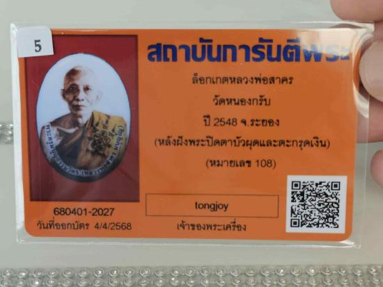 ล็อกเก็ตหลวงพ่อสาครปี 2548 หลังฝังพระปิดตาบัวผุดและตะกรุดเงินหมายเลข 108 พร้อมบัตรครับ
