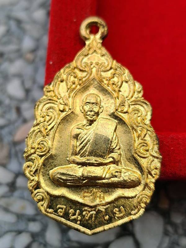 เหรียญลายกนก "รุ่น 1" ปี2519 หลวงปู่กินรี จนฺทิโย วัดกัณตะศิลาวาส จ.นครพนม (ตอกโค๊ต,ตอกเลข ๘๓) กะไหล่ทอง กล่องเดิม