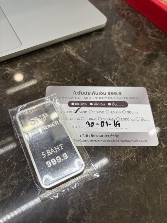 ของขาดตลาด เก็บได้เก็บกันครับ แท่งเงิน 999.9% 5บาท 76.xxกรัม SNP ห้างทองแสงนภา