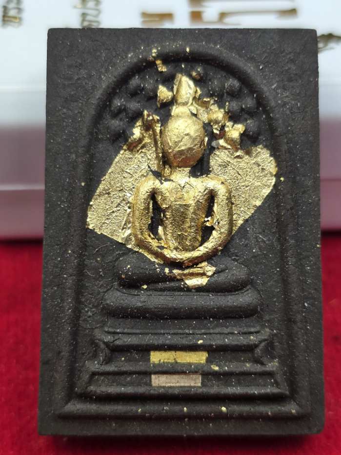 พระผงน้ำมันสมเด็จปรกโพธิ์ รุ่นสร้างโบสถ์ เนื้อผงใบลาน ปิดทอง ฝังตะกุดทองคํา+ตะกรุดเงิน เลข12 พุทธภิเษกที่วัดประดู่ฉิมพลี จัดสร้างโดยวัดบ้านอ้อ