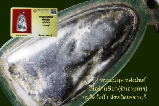 พระอุปคุตหลังยันต์ เนื้อชินเขียว กรุ วัดวังบัว พร้อมบัตรรับรอง