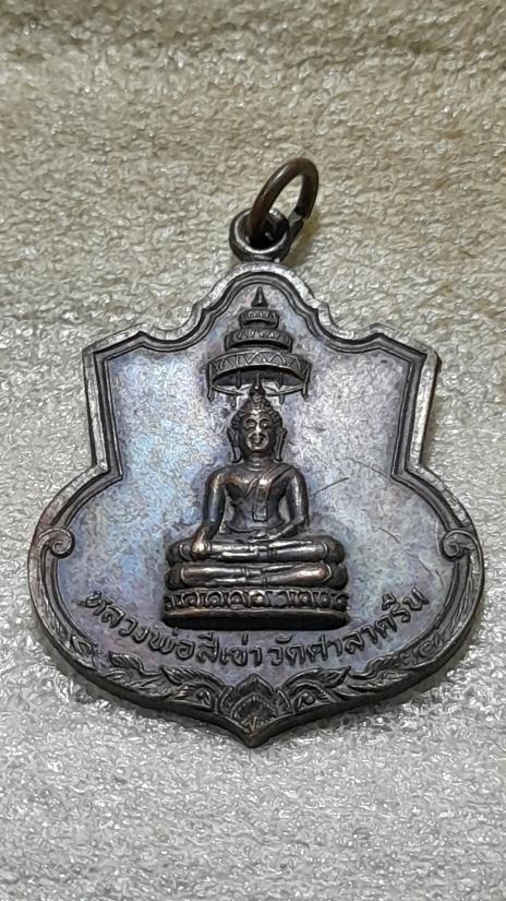 เหรียญอาร์ม หลวงพ่อสี่เข่า วัดศาลาครืน กทม. หลวงปู่โต๊ะ วัดประดู่ฉิมพลี ปลุกเสก เนื้อทองแดงรมดำ จัดสร้างปี พ.ศ.2521 พร้อมพระปิดตารุ่นแรก เพื่อเป็นที่ระลึกการสร้างหอประชุมใหญ่และกุฏิวิปัสสนากรรมฐาน ๑๘ หลัง ของวัดศาลาครืน