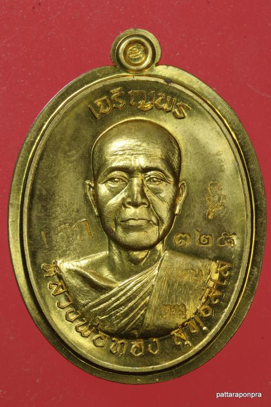 เหรียญพ่อทอง รุ่นเจริญพรบน ปี 2558 เนื้อทองฝาบาตร ไม่ตัดปีก หมายเลข 325