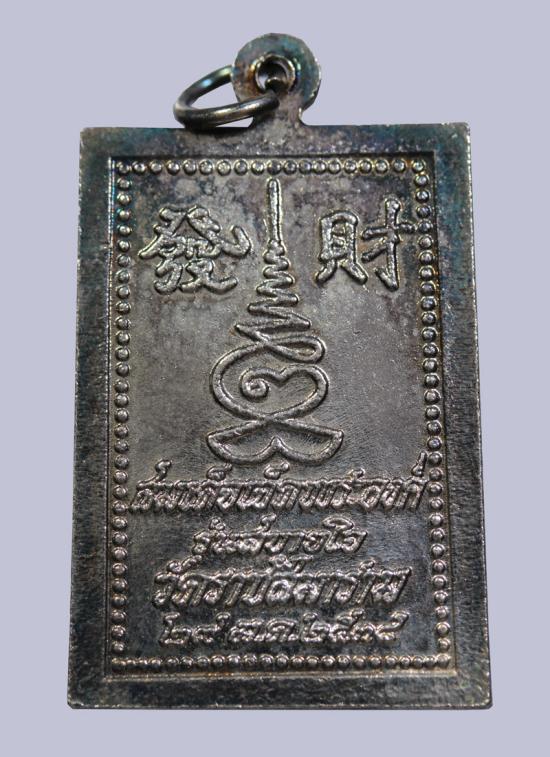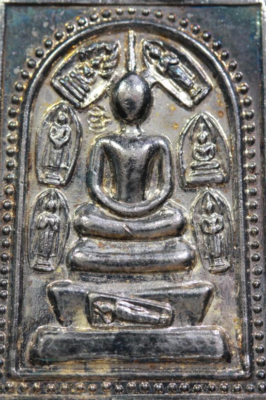 ด้านหน้า: เป็นรูปจำลองพระสมเด็จฐาน 3 ชั้น นั่งสมาธิบนอาสนะ ลวดลายงดงามตามพุทธศิลป์