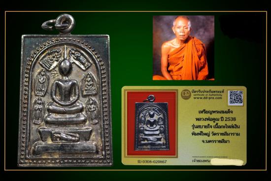 เหรียญพระสมเด็จ หลวงพ่อคูณ ปี 2538 รุ่นสบายใจ เนื้อกะไหล่เงิน พิมพ์ใหญ่ วัดราชสรมาราม จ.นครราชสีมา น่าบูชามากๆค่ะ+บัตร