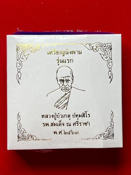 เหรียญนั่งพาน รุ่นแรก หลวงปู่บัวเกตุ ปทุมสิโร 1กล่อง มี 2 องค์