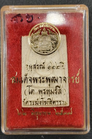 ชื่อพระเครื่อง พระสมเด็จอนุสรณ์ 122 ปี พิมพ์ใหญ่ ((บล็อกนิยมแขนจุด)) สภาพสวยงาม มาพร้อมกล่องเดิม.