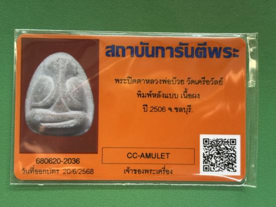 1.พระปิดตารุ่นแรก ปี 2506 พระอาจารย์บ๊วย วัดเครือวัลย์ ชลบุรี เนื้อผงพุทธคุณพิมพ์ใหญ่หลังแบบ มาพร้อมบัตรรับรองการันตีพระ