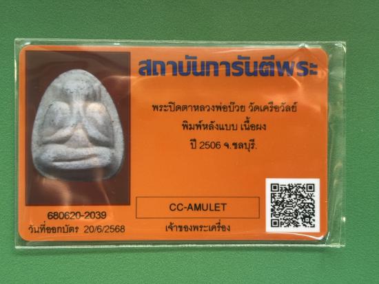 พระปิดตารุ่นแรก ปี 2506 พระอาจารย์บ๊วย วัดเครือวัลย์ ชลบุรี เนื้อผงพุทธคุณพิมพ์ใหญ่หลังแบบ มาพร้อมบัตรรับรองการันตีพระ