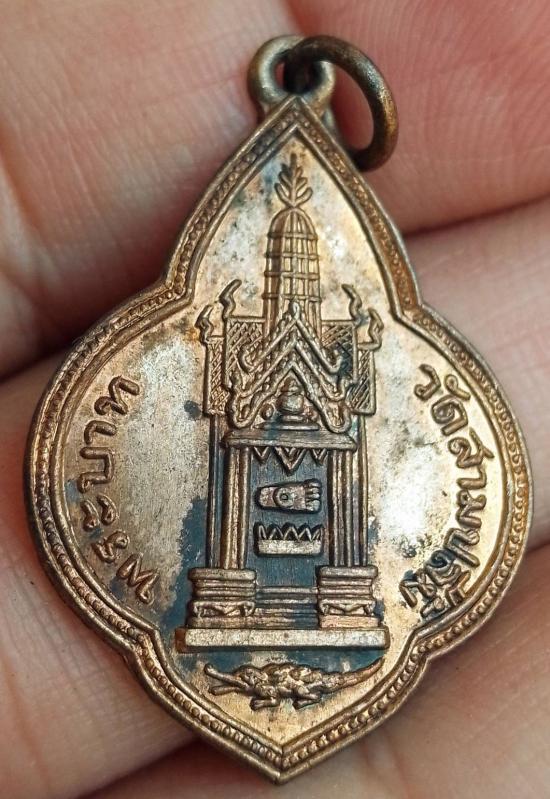 เคาะเดียวแดง.....เหรียญพระพุทธบาท หลังท่านเจ้ามา ปี 2498 เนื้อทองแดงกะไหล่ทอง วัดสามปลื้ม กทม.