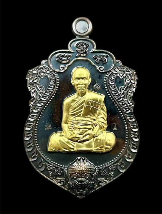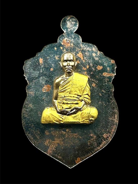 "เนื้อนวโลหะหน้ากากทองคำหลังกึ่งเรียบ" ด้านหลังติดลอยองค์ผ่าซีกเนื้อนวะโลหะ