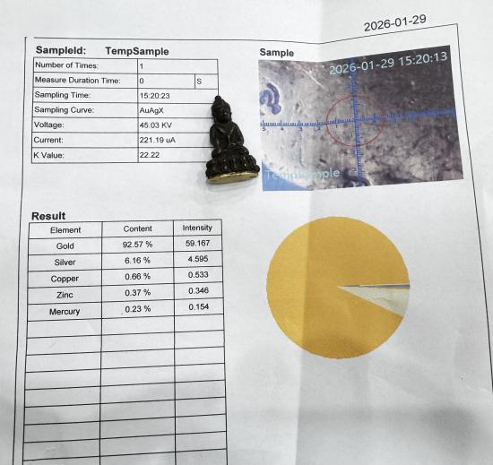 กริ่ง มหาบารมี นวะก้นทองคำ ปี2536 เช็ค เปอร์เซ็นต์ทองได้ 92.57 % แผ่น ทองคำหนาพอสมควรครับ (( เคาะแรกแดง))