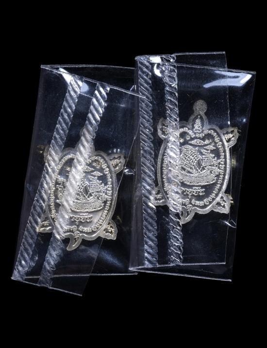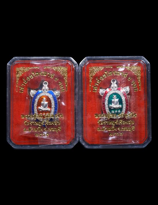 เหรียญเต่าน้อย เนื้ออาบเงิน หลวงปู่ฮก รตินฺธโร วัดราษฏร์เรืองสุข จ.ชลบุรี 2 เหรียญ มีกล่อง แดงเคาะแรก