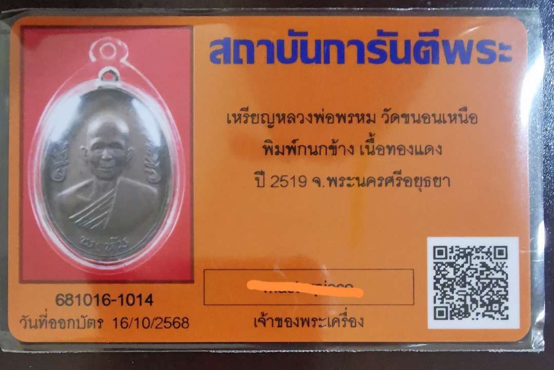 เหรียญกนกข้าง หลวงพ่อพรหม วัดขนอนเหนือ จัดสร้างปี ๒๕๑๙ สวยๆ พร้อมบัตรรับรอง