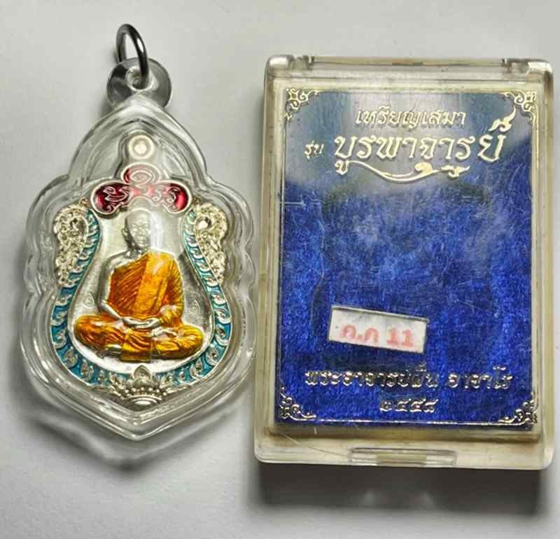 เหรียญพระอาจารย์ฝั้น อาจาโร รุ่นบูรพาจารย์ ปี58 ที่ระลึก116ปี ชาตกาล **เนื้อเงิน**ลงยา3สี โค๊ดกรรมการ เบอร์สวย 11 เลี่ยมกันน้ำ+กล่องเดิม (น้ำหนักชั่งรวมกรอบ 25กรัม)