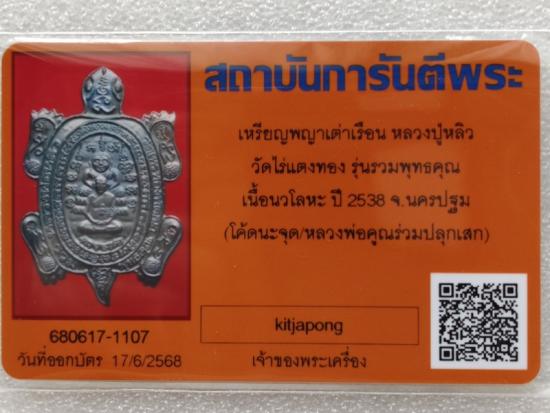 แรงสุดช่วงนี้!!!เหรียญพญาเต่าเรือน "รุ่นรวมพุทธคุณ" ปลุกเสกโดย หลวงปู่หลิวและหลวงพ่อคูณ เนื้อนวะ หัวเงิน 4 โค๊ต วัดไร่แตงทอง นครปฐม ปี2538 กล่องเดิม พร้อมบัตรรับรอง วัดใจไปครับ