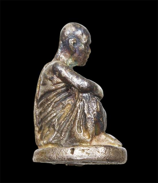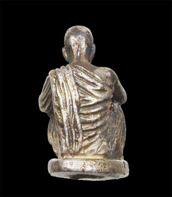 รูปหล่อเหมือนนั่งบริกรรมคาถา พิมพ์เล็ก รุ่น ให้ลาภ บรรจุผงไม้พญาคูนมหาสิทธิโชค อฐิษฐานจิตตลอดไตรมาส วัดบรูพ์ ( เนื้อเงิน ) พ.ศ.2533 กล่องเดิม