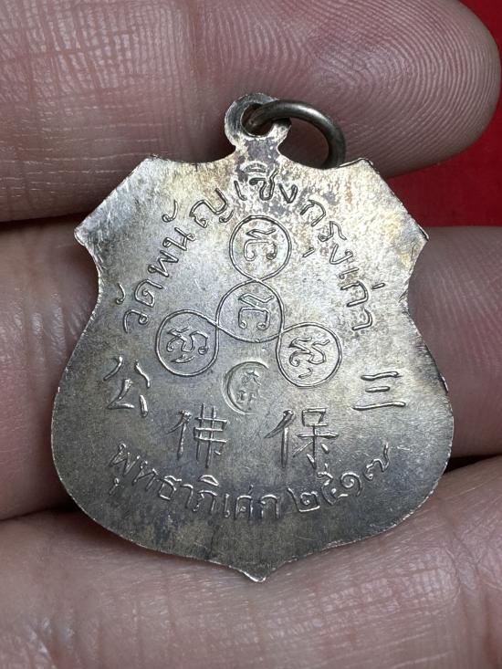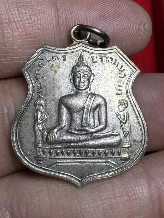 เหรียญพระพุทธไตรยรัตนนายก (อาร์มใหญ่) เนื้อเงิน ปี พ.ศ.2517 หลวงพ่อโต วัดพนัญเชิง จังหวัดพระนครศรีอยุธยา สภาพสวย ผิวเดิม ตอกโค้ด