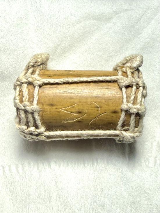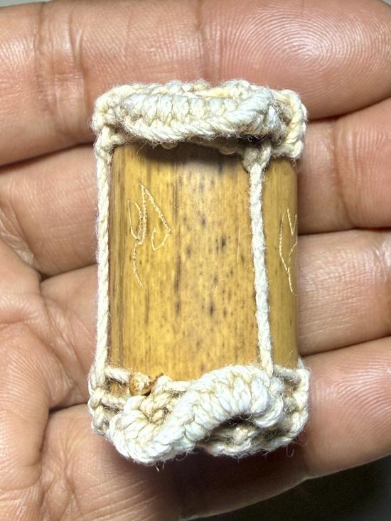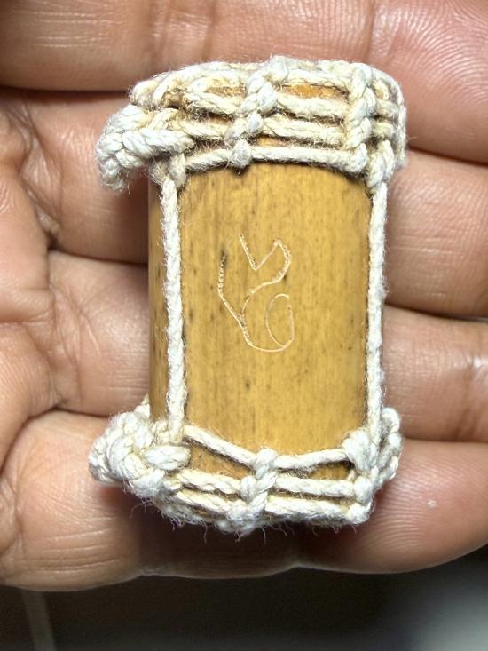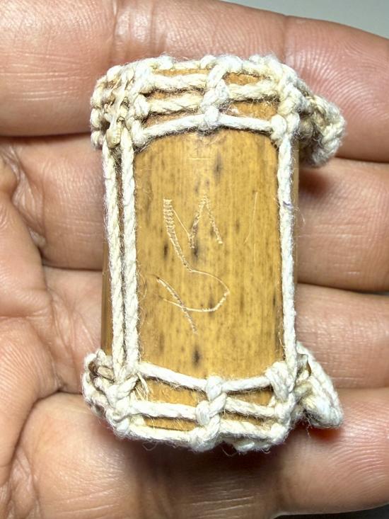 ตะกรุดไม้ ถักเชือกมีรอยจาร ไม่ทราบที่ครับ