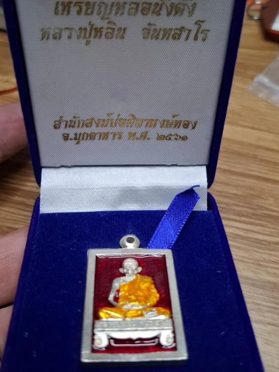เหรียญหล่อนั่งตั่ง รุ่นแรก หลวงปู่หลิน. จันทสาโร สำนักสงฆ์บ่อศิลาหงส์ทอง อ.เมือง จ.มุกดาหาร พ.ศ.2561 เนื้อเงินลงยาแดง เลข 51 น้ำหนัก 20.74 กร้ม