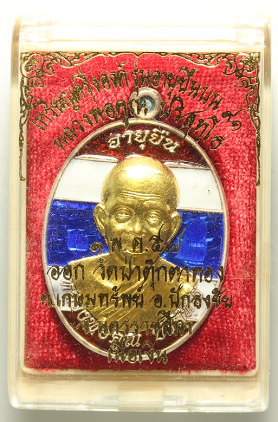 เหรียญหลวงพ่อคูณ ปริสุทโธ ครึ่งองค์ รุ่น อายุยืนบน 91 ออกวัดป่าตุ๊กตาทอง ปี 57 เนื้อ เงินหน้ากากทองคำ หมายเลข 29 นน.ประมาณ 17.45 กรัม หน้ากากทองคำใหญ่สูงประมาณ 2.7 ซม.ครับ