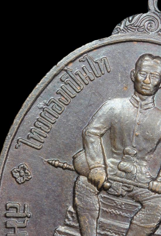 เหรียญหนึ่งในสยาม รูปไข่ ด้านหน้าสมเด็จพระนเรศวรมหาราช ด้านหลังพระไพรีพินาศ บล๊อก "ป" แตก นิยม ปี2519 องค์ที่ 2