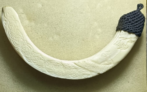 เขี้ยวหมูแกะลายมังกรสวยครับ ไม่ทราบที่ครับ