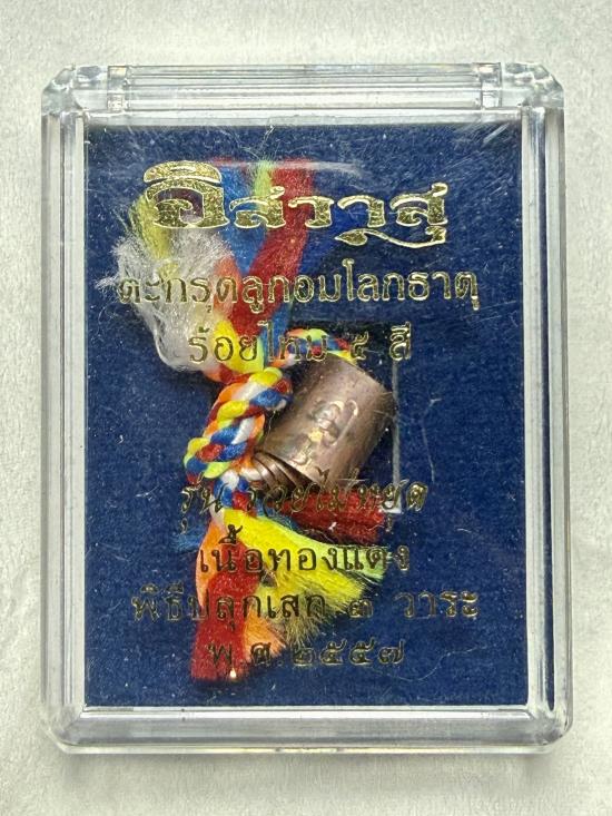 ตะกรุดลูกอมโลกธาตุ เนื้อทองแดงร้อยไหม5สี เนื้อโลพหะ ไม่ทราบที่ พร้อมกล่องครับ