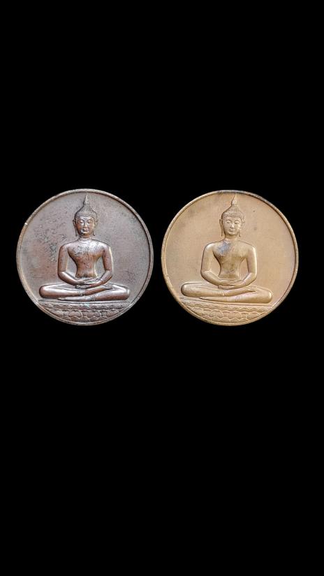 **100.** รวม 2 เหรียญ เหรียญพระพุทธสิหิงค์ ฉลอง 700 ปี ลายสือไทย หลัง ภปร. ปี 2526 ลพ.แช่ม,ลพ.จรัญ,ลพ.เกษม ปลุกเสก พิธีใหญ่