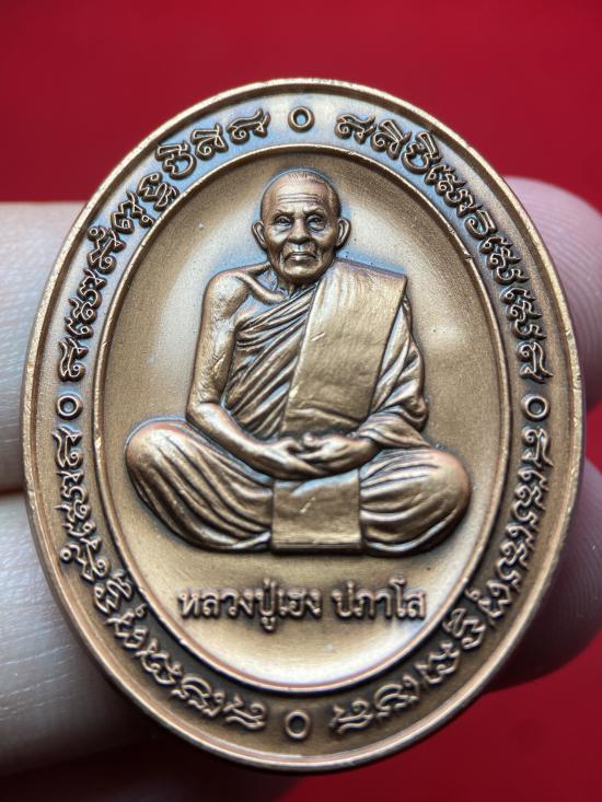 เหรียญ หลวงปู่เฮงปภาโส รุ่น รวย ๕ แชะ เลข54 เนื้อทองแดงซาตินพิเศษหลังเรียบพร้อมกล่องเดิม