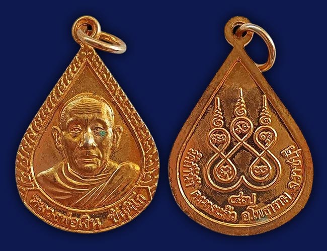 เหรียญหยดน้ำ รุ่นประสบการณ์ขวานบิ่น กะหลั่ยทอง หลวงพ่อเงิน วัดถ้ำน้ำ ราบุรี ปี 2547 (องค์ที่ 1)