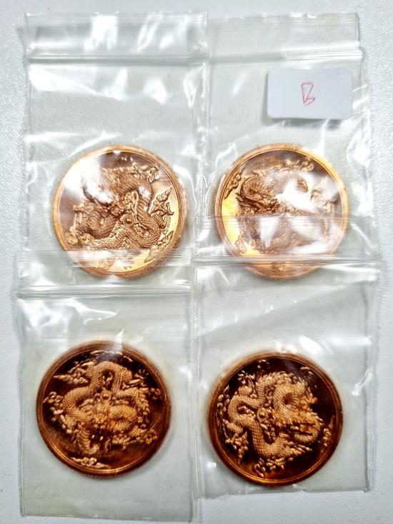 เหรียญพญามังกรทองจักรพรรดิ์ วัดไตรมิตรวิทยาราม เนื้อชนวนทองแดง 2เหรียญ (B)