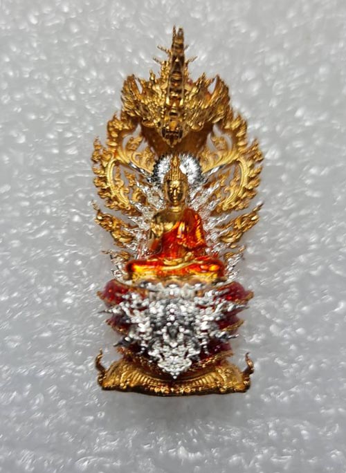 พระนาคปรก รุ่น "พรภควันต์" วัดลอน พัทลุง รายการที่ 9 องค์พระบรอนซ์ชุบเงินลงยาจีวรสีส้ม ฐนนากบรอนซ์ชุบทองลงยาแดง หมายเลข 373 พร้อมกล่องเดิมๆครับ (จอง 1,600)