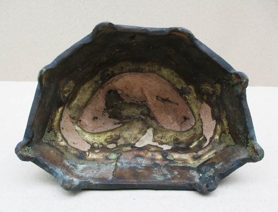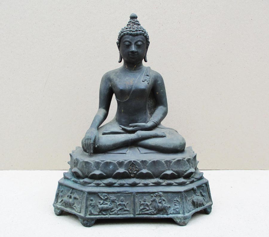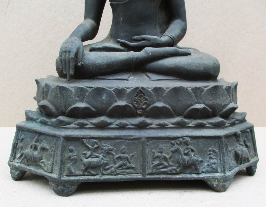 ฐานกว้าง 7.5 นิ้ว....ส่วนลึก 5 นิ้ว หล่อขอบหนาๆ มีดินเทาลวดช่อชนวนขึ้นหุ่นเทียนองค์พระ ฯ