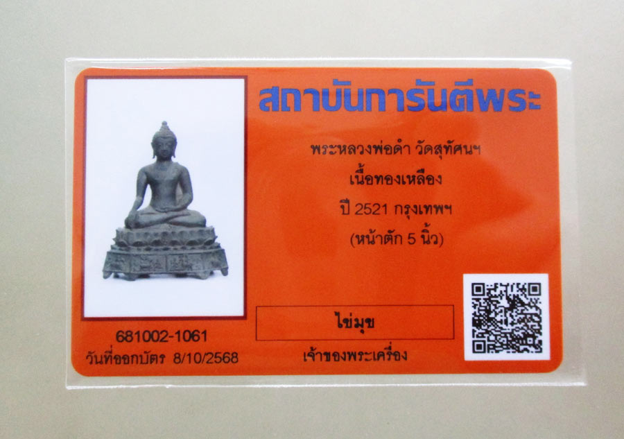 พระบูชา หลวงพ่อดำ วัดสุทัศน์ กรุงเทพฯ พ.ศ.2521