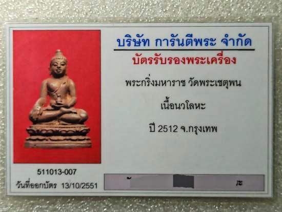 พระกริ่งมหาราช เนื้อนวะโลหะ ปี 12 วัดพระเชตุพน พร้อมบัตรgpra