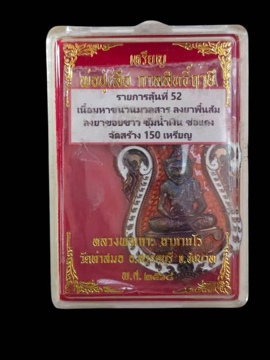 เหรียญพิมพ์เสมา พ่อปู่เสือ กาลสิทธิ์ รุ่นแรก หลวงพ่อเกาะ อาภากโร วัดท่าสมอ จ.ชัยนาท(ศิษย์สายตรงหลวงพ่อกวย วัดโฆษิตาราม) เนื้อมหาชนวนมวลสารลงยาหมายเลข๙๕ พร้อมกล่อง