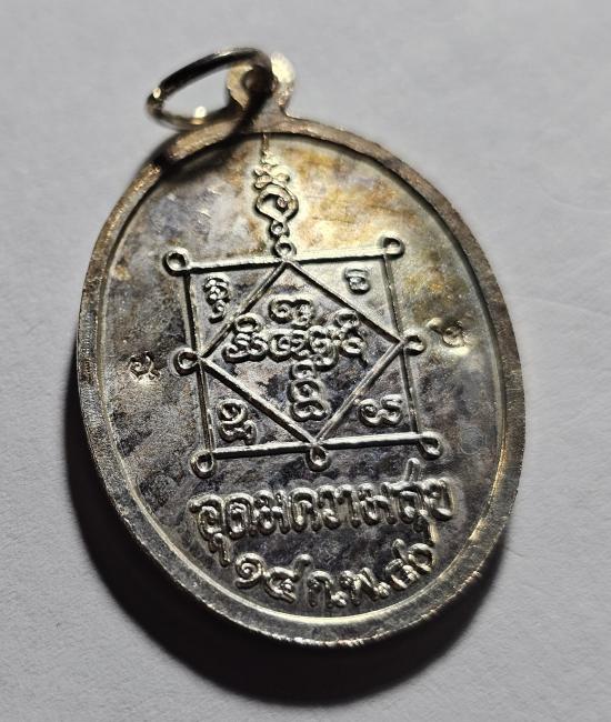 เหรียญ หลวงปู่คำพันธ์ รุ่นอุดมความสุข วัดธาตุมหาชัย จ.นครพนม เนื้อเงิน ปี 2540 พร้อมกล่องครับ เลขสวยๆ 4