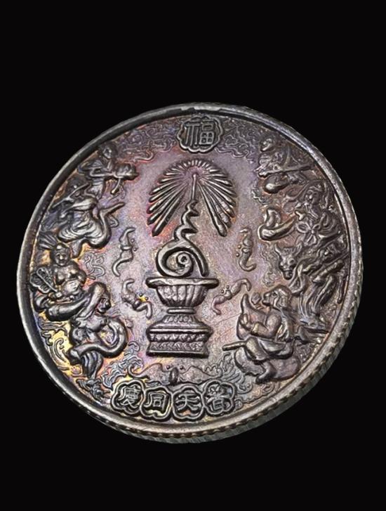 วัดใจ100 เหรียญ"แปดเซียนโพวเทียนตังเข่ง" สร้างขึ้นในโอกาสที่พระบาทสมเด็จพระเจ้าอยู่หัว รัชกาลที่ 9 ทรงครองสิริราชสมบัติครบ 50 ปี ในปี พ.ศ. 2539