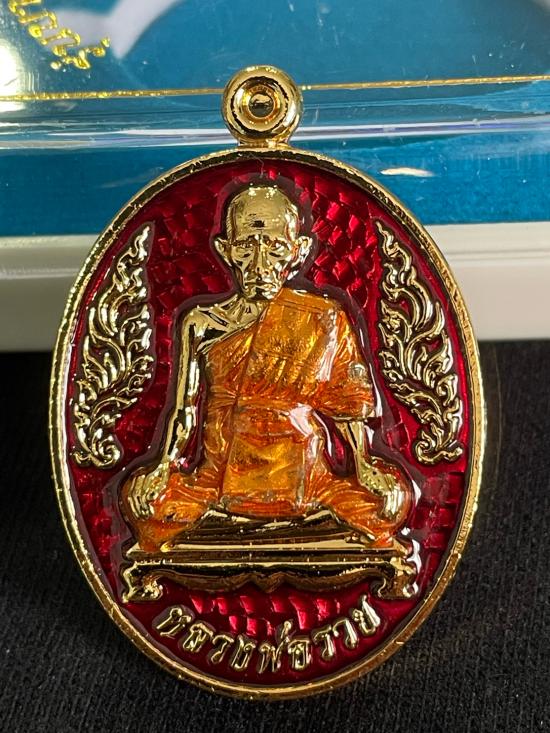 เหรียญหลวงพ่อรวย วัดตะโก จังหวัดอยุธยา รุ่นบารมีหลวงพ่อรวย ปี 2566 เนื้อกะหลั่ยทองลงยาแดง หมายเลข 440 พร้อมกล่อง
