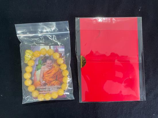 แผ่นทองเหนือดวง พร้อมกำไล หินน้ำเต้าสีเหลือง มีเรเซอร์ ยันต์ หลวงปู่ศิลา สิริจันโท
