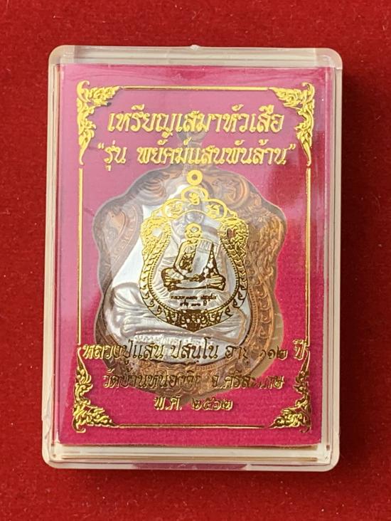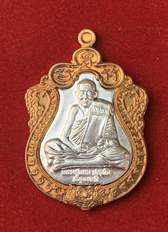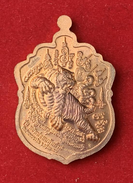 เหรียญเสมาหัวเสือ รุ่นพยัคฆ์แสนล้าน หลวงปู่แสน วัดบ้านหนองจิก เนื้อทองแดงหน้ากากเงิน