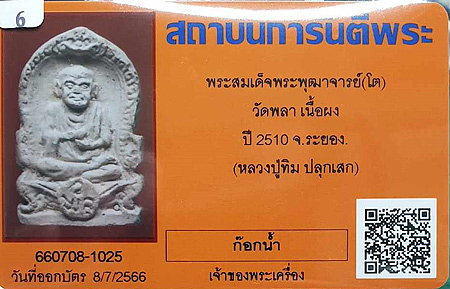 สมเด็จพุฒาจารย์(โต) วัดพลา เนื้อผงเหลือง ปี2510 พร้อมบัตร6
