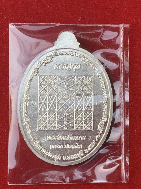เหรียญเจริญสุข หลวงพ่อแสวง วัดลาดปลาดุก จ.นนทบุรี เนื้อเงินลงยาสีน้ำเงิน