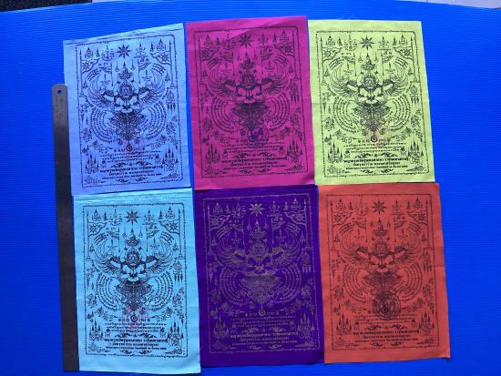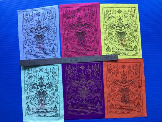 ผ้ายันต์ พญาครุฑ รุ่น ราชันย์มหาเศรษฐี วัดครุฑธาราม จ.พระนครศรีอยุธยา ขนาด A4 ( 6 สี ,6 ผืน ) |