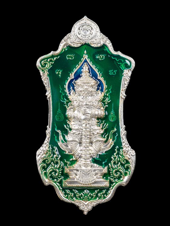 เนื้อเงินลงยาสีเขียว 2 หน้า