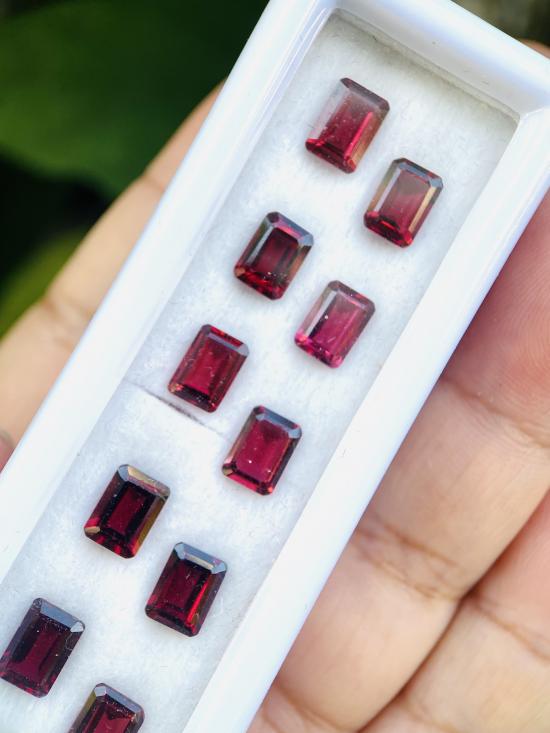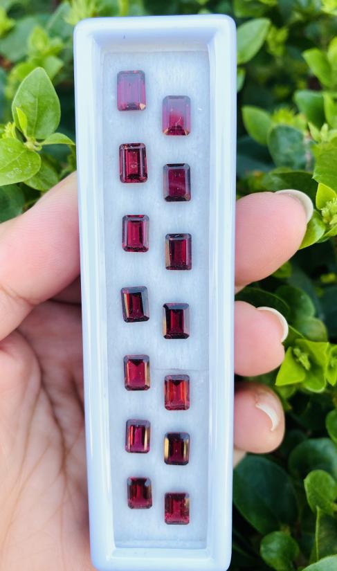 โกเมนชมพู เหลี่ยม Emerald Cut จำนวน 14 เม็ด น้ำหนักรวม 9.98 กะรัต
